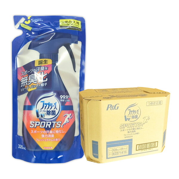 品名: ファブリーズ スポーツ フレッシュライムの香り つめかえ用 製造: P&G 正味量: 320ml 入数: 24パック ケース番号: 82271416 JANコード: 4902430785877 ※メーカー都合により デザイン等が予告なく変更になることがあります。