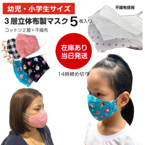 【幼児・小学生サイズ】 在庫あり 布マスク 立体布マスク 洗える立体マスク 洗える布マスク 5枚入り 子供 キッズ 女性 立体 洗える 洗濯 繰り返し 使える 洗って使える 不織布 フィルター付き 花粉 粉塵 柄 可愛い おしゃれ 即納 清潔 複数枚 当日発送 送料無料
